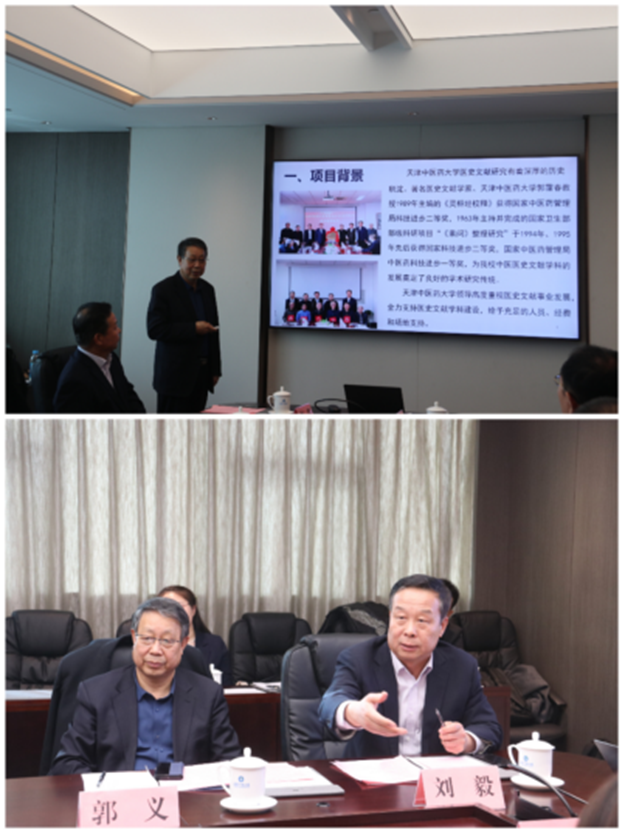 天津中医药大学副校长郭义教授从项目背景、意义、目标、工作原则、项目任务、实施方案等6个方面介绍了《医藏》点校项目总体方案,并提出了此次会议需要商讨的问题。
